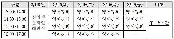 2023학년도 신입생캠프 중 영어강의 안내(1) 페이지 정보 작성자 미래교육센터 작성일23-02-02 10:46 조회3,340회 댓글0건 이전글 다음글 목록 본문 2023학년도 신입생캠프 중 영어강의에 관련된 일정 및 자료는 2023. 2. 9(목) 17시 경 안내할 예정입니다. 댓글목록 등록된 댓글이 없습니다. 이전글 다음글 목록