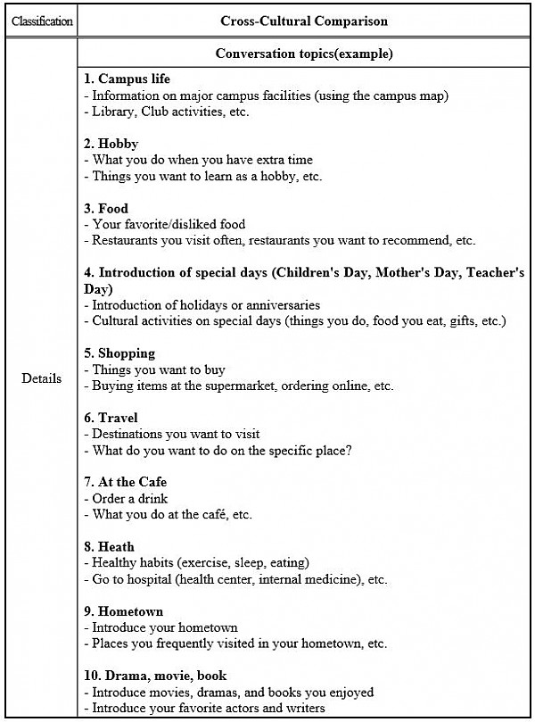 - Korean and international students work as language practice partners to help each other adapt to school life on campus