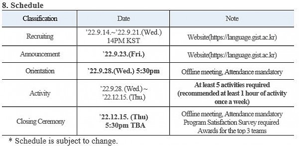 - Application Form: Posted on the LEC website (https://language.gist.ac.kr)