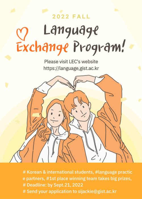 Language Exchange Program (Doran Doran: 도란도란) is designed to help Korean and international students understand each other's language and culture by performing language exchange activities. The Language Education Center seeks to recruit Korean and international students who can share their language and culture of their home country to cultivate our learning environment at GIST. We highly encourage you to participate in this program.