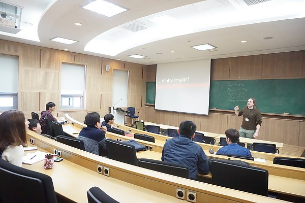 This workshop was divided into two parts: 'Standard English vs. Global Englsih' and 'Konglish or Englsih?'. Many different Englishes in the world and Konglish words were covered in this workshop. About twelve GIST students attended this workshop.